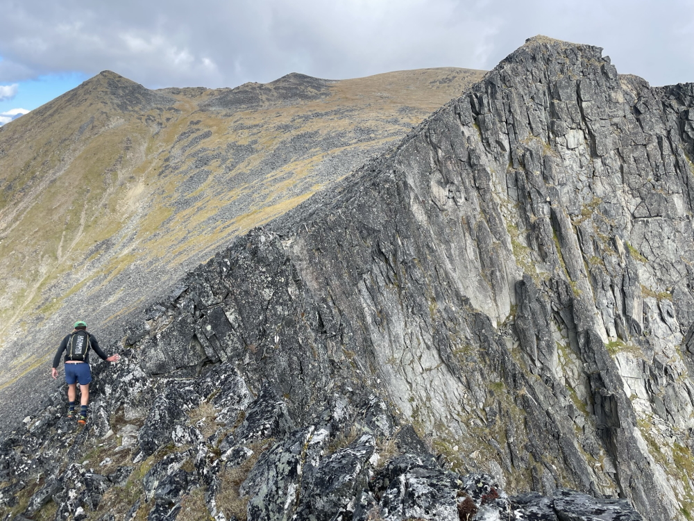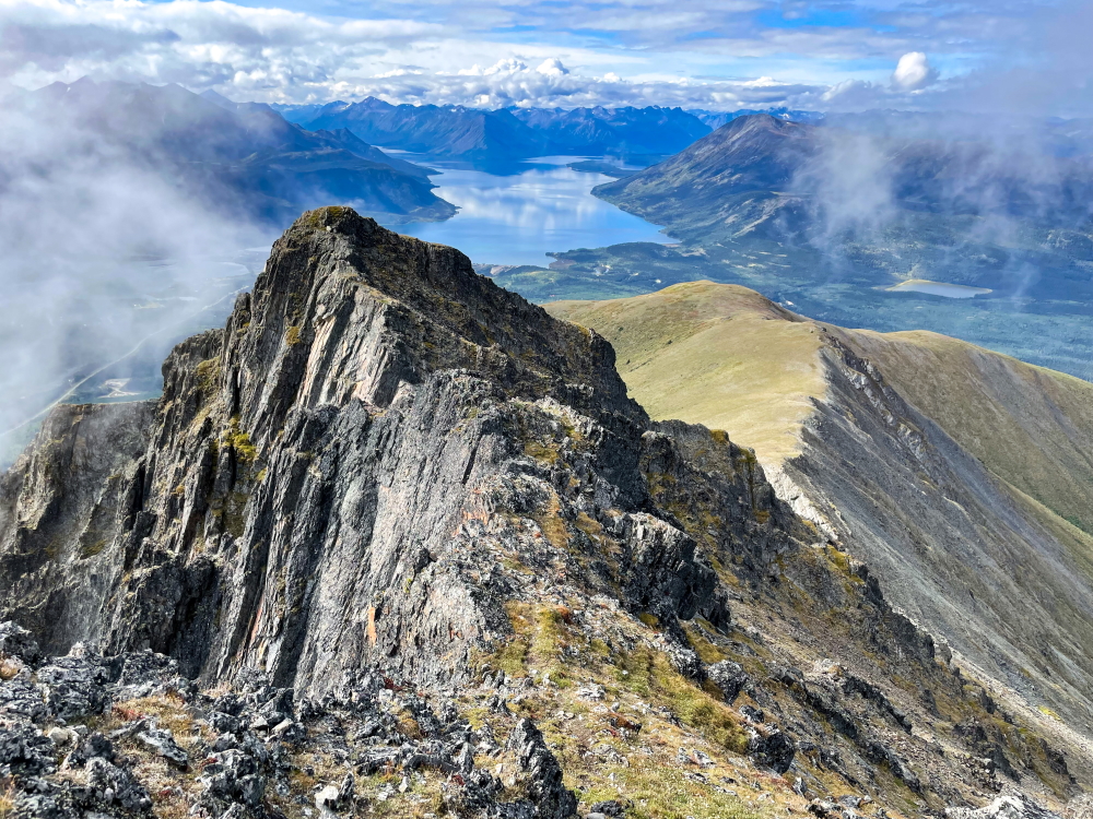 The next section of the ridge was incredibly fun hiking. The ridge turned rocky with huge cliff faces that went down to the Tagish Road side. The other side of the ridge offered fairly safe hiking. You could pick your own route and have as much or as little exposure as you felt comfortable with.