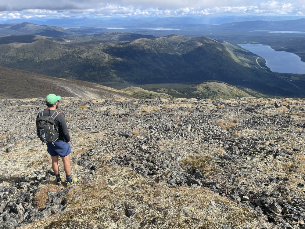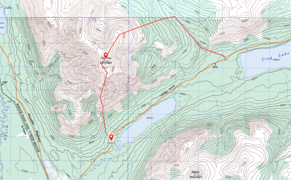 Our plan was to hike to the summit and continue over it. We would hike down the other side to where, allegedly, we could bushwhack to an ATV trail that would lead us back to the Tagish Road. Before the hike, we stashed a bike there, and we would use the bike to get back to our vehicle. The ATV trail was a bit of an uncertainty, but we welcomed the adventure.