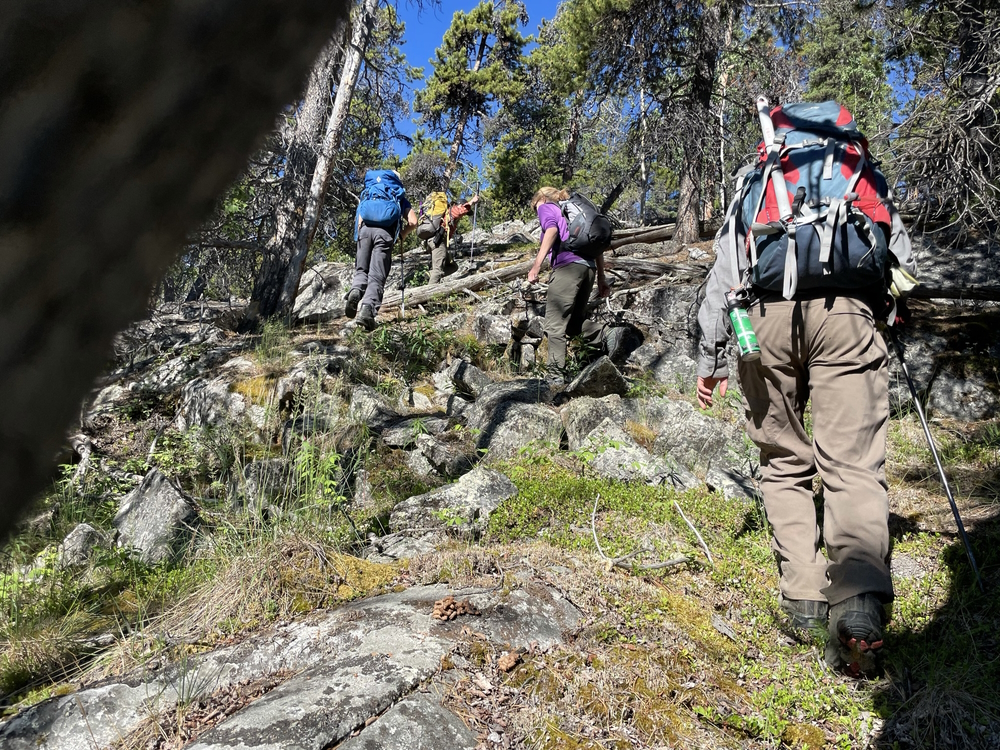 Back in the forest, the mosquitoes were relentless, but they seemed to stop at treeline. However, the day had become incredibly warm (26 C) and without a breeze, shade or anywhere to fill our water bottles, we were struggling in the heat.