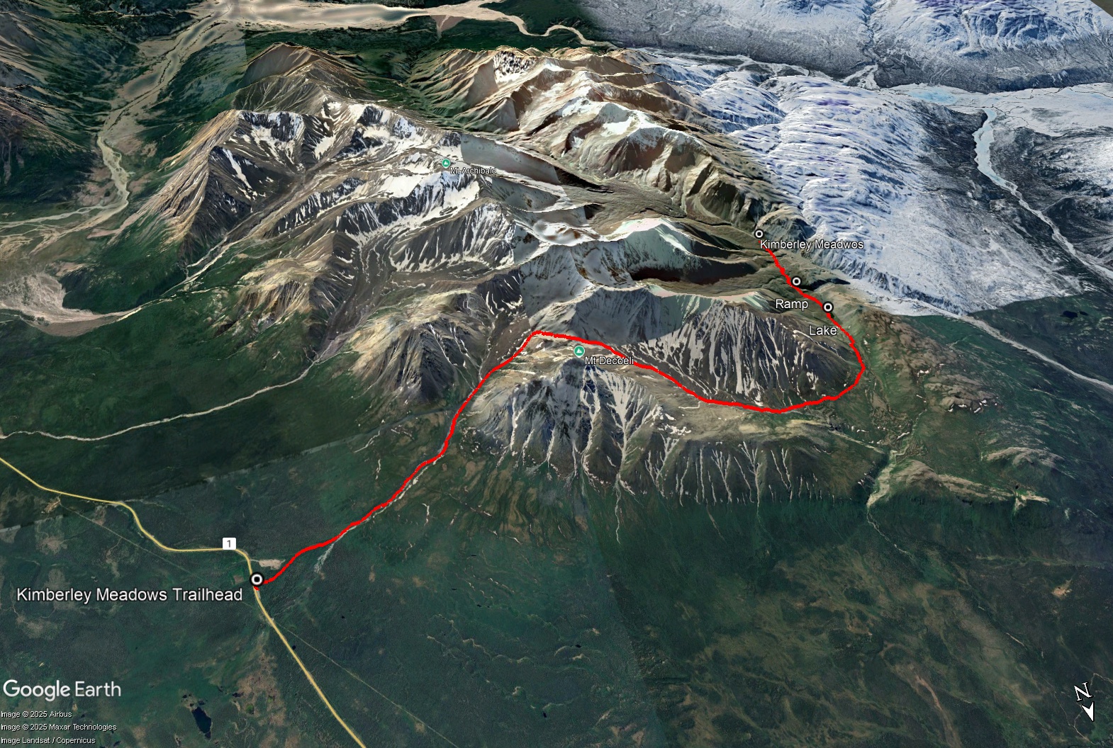 From Haines Junction, drive north along the Alaska Highway for about 20 km. Just north of the Bear Creak Summit sign, there is a pull-out on the left. This is the same trailhead as for Mount Decoeli.
