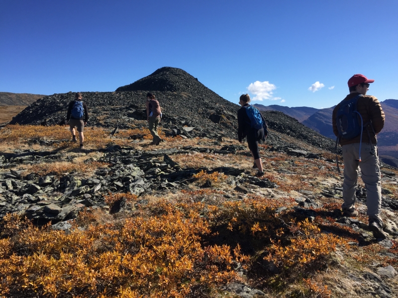 Scramble up the rocky talus ridges for a view over Keno City and towards the Mount Hinton area.