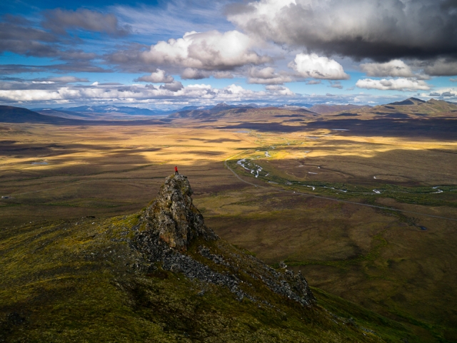 Once at the saddle you can see into the other valley and south down the Dempster Highway. Follow the ridge up towards the small peak of Surfbird Mountain which lies to the southwest. From the peak, there are beautiful views towards Blackstone Mountain and Mount Auston. Wildhorse Creek winds its way below to the south.