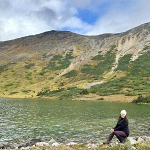 On the other side, continue on the road, which heads a bit more directly uphill and you'll shortly reach the lake. There are many areas where you can camp if you wish to spend a night or two in the area. Check out the Fraser Peak hike or enjoy wandering around the many small alpine lakes (tarns) and consider the Extended Hike options below.