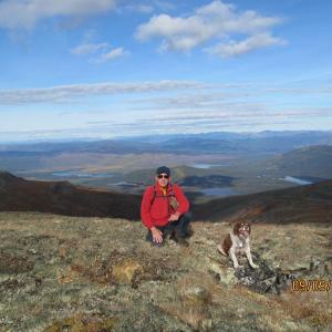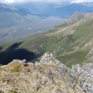 From the parking area, follow the road that continues to the east for 100 m then leave the road and head south across the alpine tundra towards some small rocky ridges. Follow the ridges east, and find an easy route up the rocky talus to the highest rocky ridge (marked by a cairn and a claims post on top). From here you can get a great view down over Keno City and south towards the Mount Hinton area. This little side trip is only 1 km from the parking area.
