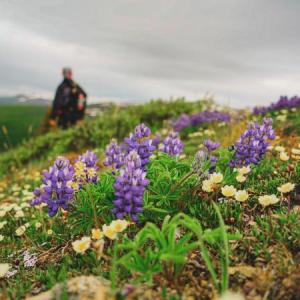 From the end of the road you can make your way up the peak in front of you. Spread out to minimize damage to the fragile lichen. It's just over 1 km to the summit from the end of the ATV trail. Follow the same route back.