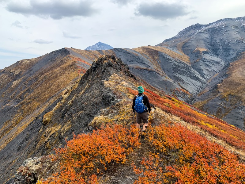 An easy to follow trail along the ridge, with Mt. Chester Henderson on the top right.