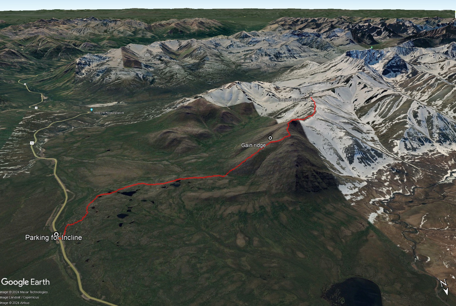 The route to Incline Mountain follows along the tops of an old moraine, which is the Continental Divide, all the way to the mountainside. Incline Mountain itself is part of the same Continental Divide as well. A steep ascent up the vegetated slope leads to a pleasant ridge walk to the summit. The views are outstanding. Bushwhacking is very minimal if you choose your route carefully.