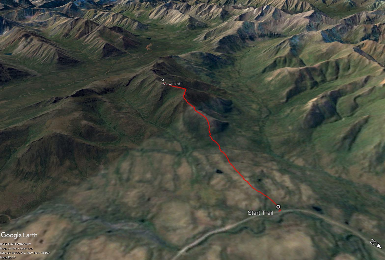 Most of the hike is soft arctic tundra ground, best done with hiking poles.
