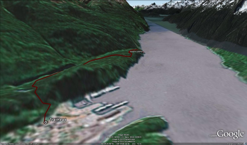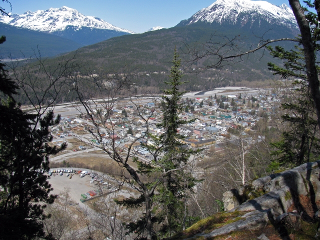 From downtown Skagway, go to 2nd Avenue and Spring Street. Walk over to the mountain side, over a bridge and across the railroad tracks. The trail starts climbing right away.