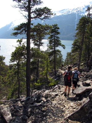A nice hike over Victoria Day weekend. Quite busy with cruise ship passengers as far as Lower Dewey Lake. I would agree with Leah's comment below. With two older kids it was closer to 3 hours each way, including the usual stops and distractions. The "easy" rating is very misleading and likely relates to other trails in the Dewey Lakes system rather than an objective rating of the difficulty. After the initial switchbacks heading up to Lower Dewey Lake from the trailhead, it does become fairly wide and flat in places. However, the last kilometre or so is very up and down, in and out of deep gullies, ending in several very steep slopes of loose rocks as you descend down to the shore. A number of inexperienced day hikers on the trail in sandals seemed caught off guard by this. I would also say camping at the end of the trail is very, very limited, with very few flat spots large enough even for a small tent. A great hike for sure, but know what you're in for.