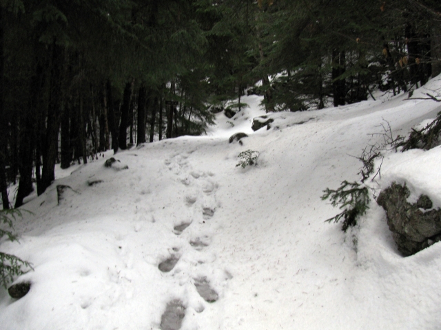 Though a little bit of snow, ice and mud, the trail is mostly clear. Lovely hike to the ocean.
