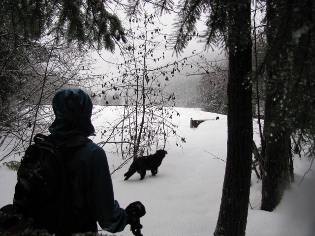 Coastal snow can be wet and heavy. Wear snowshoes and be prepared to get wet. The descent down to Sturgill's Landing is not recommended if the rocks are wet.