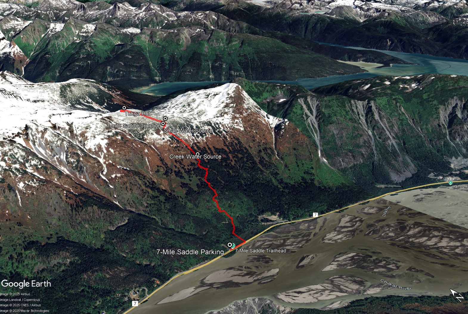 For day hikes from the hut, check out the Chilly Ridge and Tukgahgo Mountain routes on the website. There is also a trail to Shakuseyi Peak (also known as Peak 3920 or Seven-mile Saddle Peak), which requires descending from the hut down to the 7-mile Saddle trail junction.