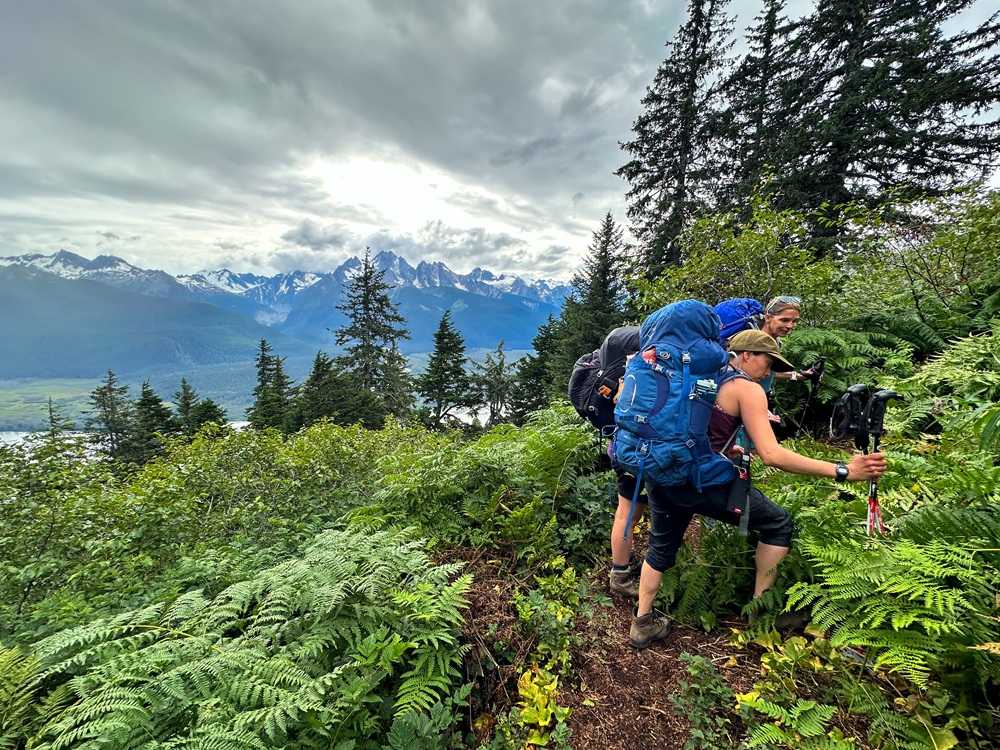 Follow the trail up through the coastal rainforest. Marvel at the huge Sitka Spruce and Devil's Club and keep an eye out for ripe blueberries, black currants and salmonberries in August. You will leave the big trees behind after a long uphill slog, and enter the sub-alpine with scattered stands of stunted Western Hemlock and open meadows of wildflowers and alpine plants.