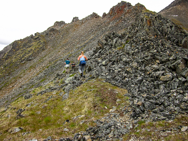 Lost the cairns at one point and found myself scrambling around a rock face with loose rocks, but then got back on top. For the return trip I opted for a scree run - shaved quite a bit of time off.