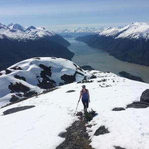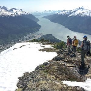 It was hot in Skagway on the May long weekend. We hiked up AB Mountain in full sun. We encountered snow in the alpine around the first view point and stopped there. However, other hikers were continuing on higher up.
