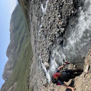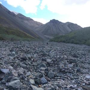 Spent the September long weekend doing this hike again (September 3rd to 5th). My second time back here, but this time we made sure to stay for two nights at the lake. I highly recommend two nights, since hiking 22km of that non-stop creek bed rock can be tough, so having a day in between to space that out will make your ankles happier. And the day hikes from the lake are truly incredible. We went up the right saddle and had spectacular views of the river valley and icefield mountains. The autumn colours were out of this world. The first night had amazing aurora, the second night had lovely snow (snow blanketed or tents and all the surrounding land. Truly beautiful. No signs of bear. Lots of pikas, a screaming marmot and some ptarmigan. The creek was much higher on the way back (because of the snowmelt), which caused us to have to be more cautious with some of the scrambles around the creek. This is easily one of my favourite hikes and I can't wait to go back.