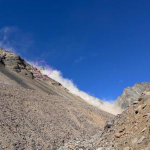 Our hike back down included a pretty scary rock slide at the narrowest part of the hike, around the 10k mark (from start). A massive chunk of rock broke off up high and crashed into the valley below where we had been only 10 minutes previous. No indication what caused it but am sharing here as kind of an FYI/heads up I guess for future hikers. This photo was taken right after the bolder hit the bottom - the dust being what it left in its wake.