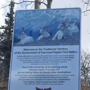 Reminder that between April 1st and June 15th, the Carcross Tagish First Nation is requesting that hikers stay out of this area due to the sensitivity of the Dall sheep lambing in the area..