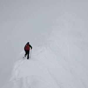 Once on the ridge, the wind was so strong that it was a struggle just to stay upright! Which meant that there was almost no snow at all because it was all windblown. Luckily it was only a few degrees below zero, otherwise frostbite would have been a definite concern.