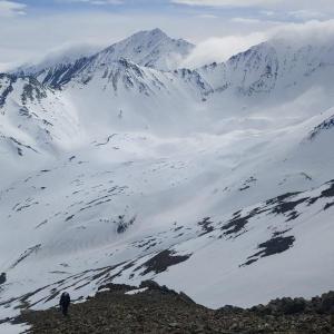 Eventually your hard work will pay off and you will reach the summit. The views are incredible in every direction. You can see deep into the St. Elias icefields as well. Return the way you came up.
