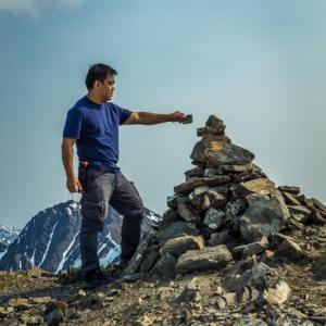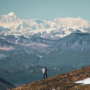 After another steady climb you will finally be rewarded with a magnificent view behind the mountain. Carefully follow the thin ridge towards the summit of the King's Throne. Valleys, rivers, lakes, and mountains seem to continue without end. On a clear day you can see the large massif of Mount Alverstone, Mount Hubbard, and Mount Kennedy from here. Return the way you came up.