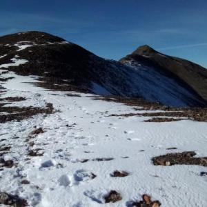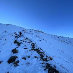 Made it up to the ridge and approx 500m from the peak. The peak was snow covered and you couldn't see the cairn. Winds between 65-70k but doable for me and my partner. Climb to ridge had one section of snow patch. We didn't use hiking poles. I had small size crampons and my partner only used them for the snow section. Hike was great!