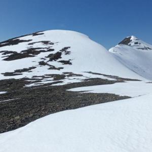 As part of a hiking party of five, we were fortunate to have favourable weather conditions for our hike to Kings Throne summit and peak. Absolute stunning 360 view from the peak made the effort well worth the challenge. Some snow between the summit ridge and peak. Winds were mild on ascent but picked up significantly for the descent. Only wildlife seen throughout the day included a moose along the shore of a lake as viewed with binoculars, a small bird at the peak and a lonely porcupine just below Kings Throne (bowl). So thrilled as this is one item off my bucket list 😎 Hike completed on June 26, 2017.