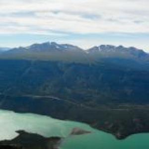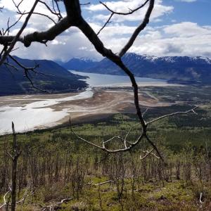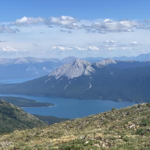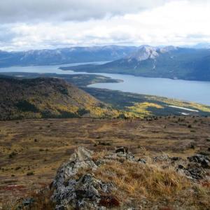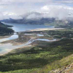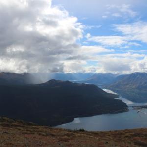 Looking towards Carcross with Bennett Lake and Nares Lake below.