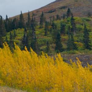 Fine day on Mt. Nares out of Carcross. Snowstorms on Caribou and Montana mountains but we just had light showers. Trail is in good shape and the fall colours are lively.