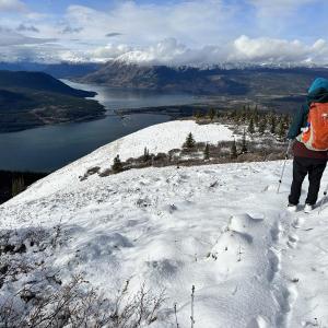 The Blattas Point Rd is often plowed in the winter, but keep in mind if it's not you will have to walk the 2 kms to the trailhead. Follow the same route as the summer route described above. As mentioned earlier, much of the ridge is bare for the most part through the winter; however it may depend on the time you choose to go and how the weather has been (i.e. new snow, strong south winds and sun). The deepest snow you would likely encounter is at the base of the mountain in the poplar and willow stand. Snowshoes shouldn't be necessary; however, at least gaters would be useful in keeping any snow out of your boots. The summit itself is fairly windswept with hard packed snow and again snowshoes should not be necessary.