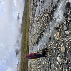 We set camp around 8-9 km in the meadows on the right side of the creek. On Saturday night right after our meal, we saw two Grizzli bears approaching in our direction on the left side of the creek (about 200 meters from us). They stopped and watched us for a while but then walked away and did not look interested in us. We definitely recommend to follow good bear safety practice such as cooking and storing your food far from your cam, and using bear canisters. No other bear sight to report that weekend.