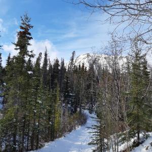 I went to this trail on October 9th, 2019. There had been quite a bit of snowfall in this part of the Yukon on Oct 6th, and most of it was still remaining here. I found there was about 7-9 inches on the trail. I had snow boots on and that was helpful, but the traction was low due to the snow. It was a great hike, but because of the snow, it took almost twice as long as it would have without snow. I saw tracks from someone else who had walked the trail sometime between the 6th and 9th, but only one person's. I didn't see any wildlife other than birds. I did see tracks of what I thought were probably foxes. On the drive back to Haines Junction, I saw a few porcupines.