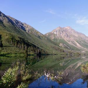 St. Elias Lake is a short hike with great rewards. There is a backcountry campground at the lake, which is nestled between tall mountains. This trail is great for beginner backcountry camping because it is a short trail to a campground with amenities. It is also great to do with kids.