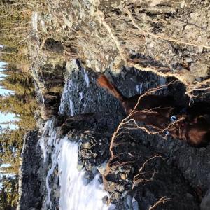 Having not hiked this trail in a few years, I was shocked at how much it had changed with the heavy snowloads and rainfall of this past year. The creek had washed out most of what was the old road. If the ground and creek weren't frozen now, it would have been challenging travel for the lower 2/3 of it. We paid attention in the lower end for where the trail went as the creek has washed through the bushes everywhere. We walked inside the rutted walls (see photo), and picked our way around the edges, and hopped over the frozen ice sections. The upper third was much better away from the creek, and we got into ankle-deep snow. Thundereggs were still calving and running down the slope on warm days like today. Beautiful hike and day exploring. Older Grizzly prints seen in the muddy trail.